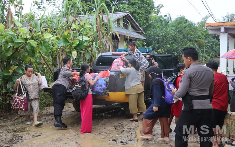 MahesaMediaCenter (Jaringan MSM), Landak Kalbar ~ Meskipun hujan masih mengguyur, Polres Landak tetap menunjukkan kepedulian tinggi terhadap warga terdampak banjir di Ngabang, khususnya di Tanjung, Desa Hilir Tengah. Dengan sigap, pihak kepolisian mengerahkan kendaraan dinas untuk membantu kepulangan para pengungsi ke rumah mereka masing-masing setelah kondisi mulai membaik,” Senin (3/2/2025)