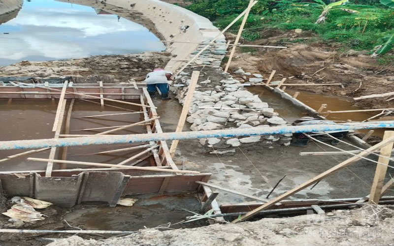 Media ini menerima informasi dari masyarakat yang tidak mau disebutkan namanya, Dengan informasi tersebut Tim investigasi langsung melihat pekerjaan tidak sesuai spesifikasi tehnis,karena baru 8 bulan pondasi mengalami kerusakan dan retak.