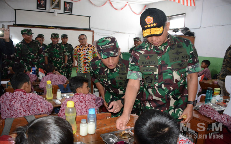 Panglima TNI saat peninjauan MBG tersebut didampingi Pangkostrad, Pangdam III/Siliwangi, Para Asisten Panglima TNI, Danpuspom, Kapuskes dan Kapuspen TNI, Kamis (06/02/2025).