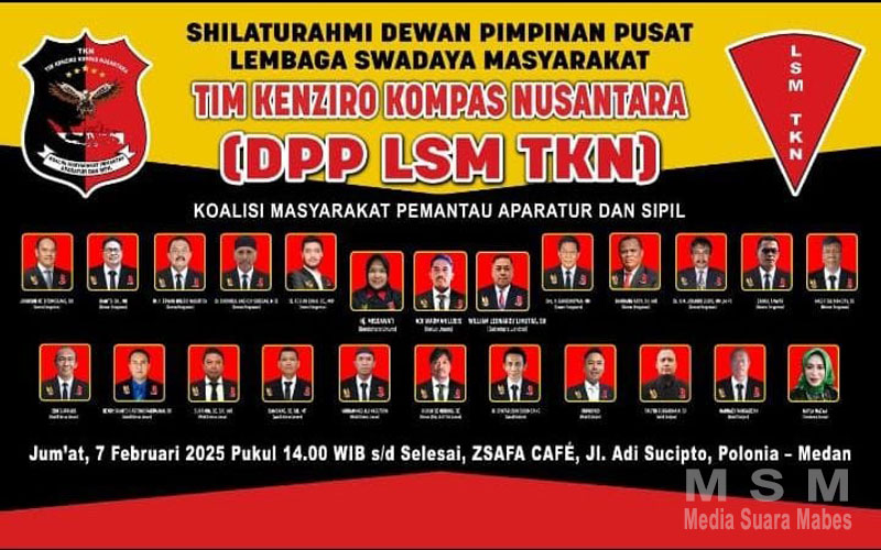 MahesaMediaCenter (Jaringan MSM), Medan – Silahturahmi Dewan Pimpinan Pusat Lembaga Swadaya Masyarakat Tim Kenziro kompas Nusa ygntara Yang di adakan di jalan, Adi sucipto Arhanud tepat di Zsafa Cafe. Medan.(07 .02.2025).Silahturahmi ini sekaligus pengukuhan pengurus Dewan pimpinan pusat TKN. ( DPP TKN).