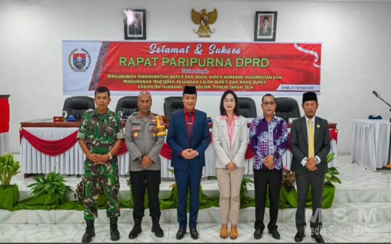 MahesaMediaCenter (Jaringan MSM), Humbahas – Dewan Perwakilan Rakyat Daerah (DPRD) Kabupaten Humbang Hasundutan (Humbahas. Dengan rapat paripurna dengan agenda pengumuman akhir masa jabatan Bupati dan Wakil Bupati periode 2020-2025 serta penetapan bupati dan wakil bupati terpilih masa jabatan 2025-2030,di gedung DPRD Kabupaten Humbang Hasundutan, Jumat (7/2/2025).