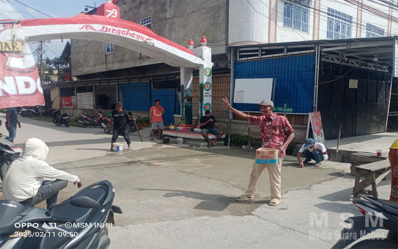 MahesaMediaCenter (Jaringan MSM), Kab. Indragiri Hilir – Warga Tembilahan kembali menunjukkan semangat gotong royong yang tinggi dalam membangun dan memperbaiki fasilitas umum di lingkungan mereka. Dalam serangkaian foto yang diambil di Jalan Pelajar, tampak masyarakat bergotong royong memperbaiki jalan di bawah gapura yang bertuliskan “Dirgahayu”.