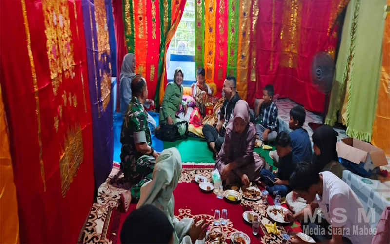 Letkol Inf Agus Priyo Pujo Sumedi didampingi istri tanpa sungkan berbincang penuh hangat,terlihat duduk dilantai beralaskan tikar menikmati hidangan berbaur dengan tamu undangan lain penuh kesetaraan dalam suasana harmoni dibalut rasa kekeluargaan.