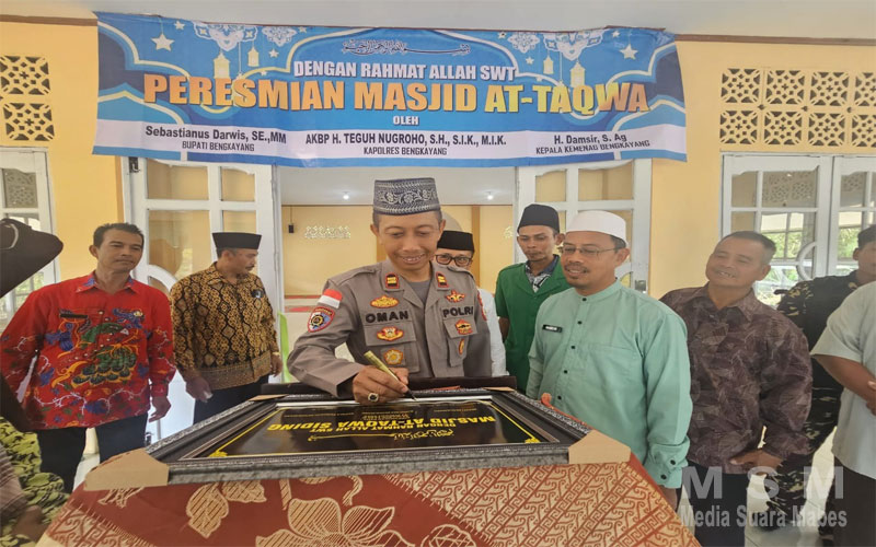Kapolres Bengkayang Polda Kalbar, AKBP Teguh Nugroho, S.H., S.I.K., M.I.K., meresmikan masjid ini melalui perwakilannya, Kapolsek Siding IPTU Oman Kurnianto.