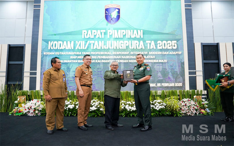 MahesaMediaCenter (Jaringan MSM), Kubu Raya – Pangdam XII/Tanjungpura, Mayjen TNI Jamallulael, S.Sos., M.Si., membuka Rapat Pimpinan Kodam XII/Tanjungpura Tahun 2025. Bertempat di Aula Sudirman, Makodam XII/Tpr, Selasa (25/2/2025). Rapat diikuti oleh seluruh unsur pimpinan jajaran Kodam XII/Tpr beserta istri.