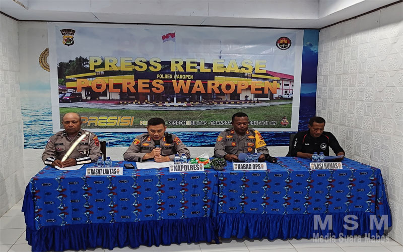 “Semoga dengan dilaksanakannya Press Release Hasil Operasi Keselamatan Cartenz 2025 Polres Waropen ini menjadi bahan analisa dan evaluasi serta memotivasi bagi Polres Waropen dalam memberikan pelayanan kepolisian yang presisi, untuk lebih baik lagi kepada masyarakat, khususnya di Kabupaten Waropen, sehingga kamseltibcar lantas yang aman lancar dan kondusif dapat terwujud.” Tandasnya mengakhiri press release