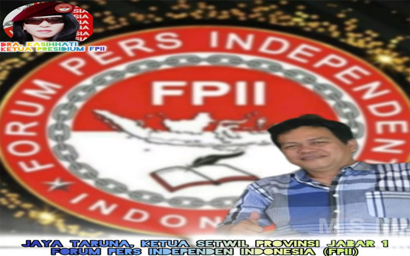 MahesaMediaCenter (Jaringan MSM), Sukabumi – Jurnalis Jaya Taruna, dipercaya memimpin Sekretariat Wilayah Jawa Barat (Setwil Jabar) Forum Pers Independent Indonesia (FPII) dari Ketua Presidium FPII Nasional Dra. Kasihhati. Amanah ini pun disambut baik Jaya dan akan dijalankan dengan sungguh-sungguh, sesuai dengan garis perjuangan yang sudah ditetapkan presidium FPII.