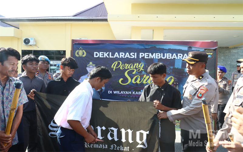 Setelah pembacaan deklarasi, acara dilanjutkan dengan penandatanganan deklarasi serta pemusnahan atribut perang sarung, termasuk bendera dan perlengkapan lainnya, sebagai simbol berakhirnya praktik yang dapat mengganggu ketertiban umum tersebut.
