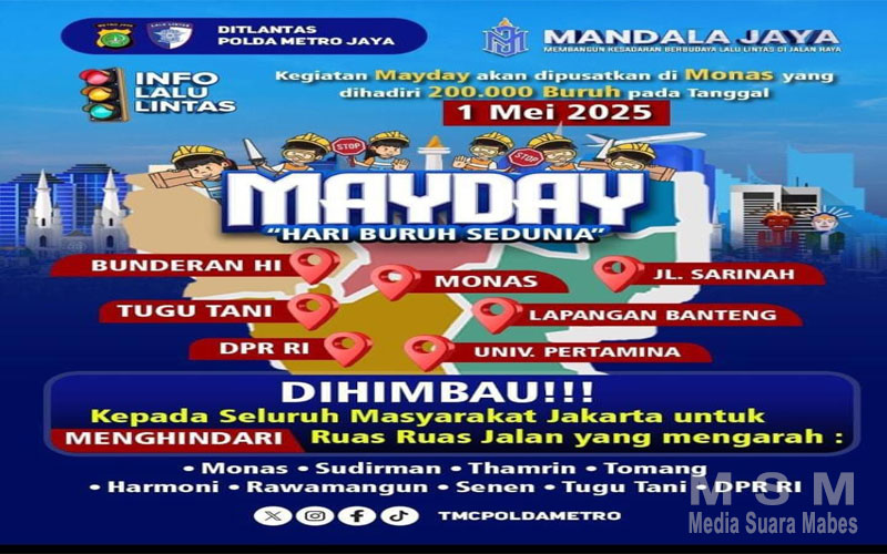 MediaSuaraMabes, Jakarta – Peringatan Hari Buruh Internasional atau May Day tahun ini dipusatkan di kawasan Monumen Nasional (Monas), Jakarta Pusat. Acara ini akan dihadiri oleh sekitar 200.000 buruh dari berbagai elemen dan organisasi serikat pekerja.