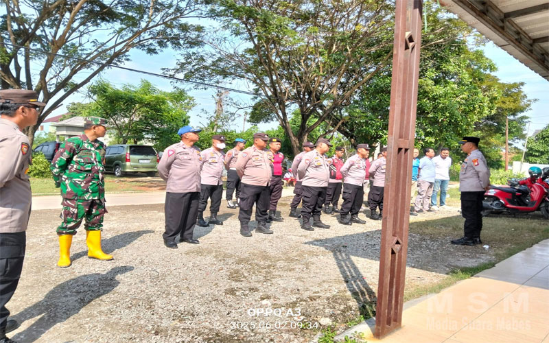 jajaran Polsek Tarumajaya Menggelar Apel persiapan Pengamanan area proyek SUTT