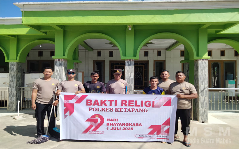 MediaSuaraMabes, Ketapang — Dalam rangka menyambut Hari Bhayangkara ke-79 yang jatuh pada tanggal 1 Juli 2025, Kapolsek Jelai Hulu IPTU Jumadi Hutabarat, S.H., bersama personel Polsek Jelai Hulu melaksanakan kegiatan Bakti Religi di Masjid Al Imam, Desa Periangan, Kecamatan Jelai Hulu, Kabupaten Ketapang, Kalimantan Barat.