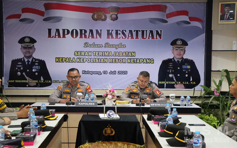 MediaSuaraMabes, Ketapang – Polda Kalbar, Suasana khidmat dan penuh nuansa kearifan lokal menyelimuti Markas Komando Polres Ketapang pada Sabtu pagi (19/07/2025), saat AKBP Muhammad Harris, S.H., S.I.K., M.I.K., CPHR, untuk pertama kalinya secara resmi menginjakkan kaki di lingkungan institusi yang kini dipimpinnya sebagai Kapolres Ketapang. Kedatangan Kapolres Ketapang tersebut disambut hangat oleh jajaran personel Polres, forkopimda, tokoh adat, dan masyarakat, dengan prosesi penyambutan yang sarat makna budaya.