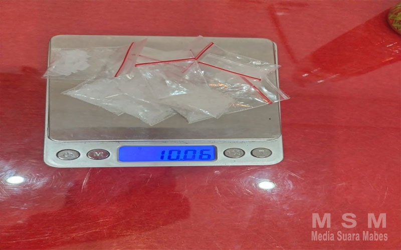 Dari hasil penggeledahan yang dilakukan oleh petugas, ditemukan sembilan paket plastik klip bening berisi kristal putih yang diduga kuat narkotika jenis sabu dengan total berat bruto 10,6 gram. Selain itu, petugas juga mengamankan 2 buah sendok sabu, 1 bungkus plastik klip kosong, 1 set bong alat hisap sabu, 5 buah korek api gas, Uang tunai sebesar Rp. 350.000 serta 2 unit handphone milik pelaku yang diduga digunakan untuk berkomunikasi dengan pembeli.