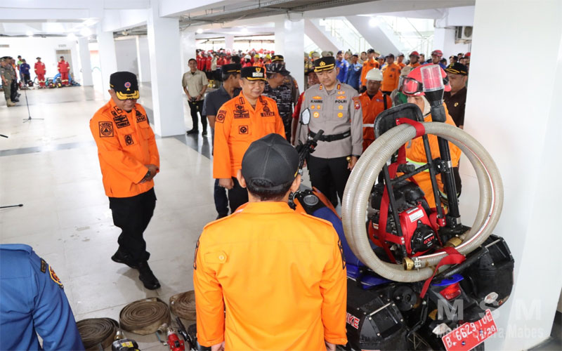 Apel gabungan ini juga ditandai dengan pengecekan kesiapan personel dan peralatan pemadaman, sebagai bentuk komitmen bersama dalam menghadapi ancaman Karhutla yang dapat berdampak luas bagi masyarakat dan di akhiri Foto bersama dengan peserta Apel.