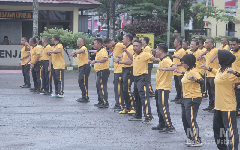 Kapolres Ketapang menyampaikan bahwa olahraga rutin sangat penting bagi anggota Polri, tidak hanya untuk menjaga kebugaran fisik, tetapi juga sebagai sarana mempererat kebersamaan dan meningkatkan semangat kerja.