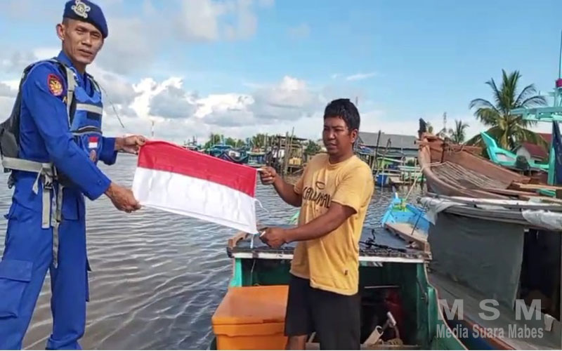 MediaSuaraMabes, Ketapang Kalbar – Menyambut Hari Ulang Tahun Kemerdekaan Republik Indonesia ke-80 tahun 2025, Satuan Polisi Air dan Udara (Satpol Airud) Polres Ketapang melaksanakan kegiatan pembagian bendera Merah Putih kepada warga pesisir, Jumat (15/08/2025).