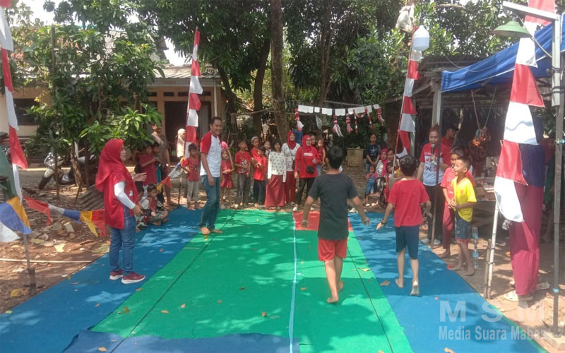 MediaSuaraMabes, Tangerang Selatan – Dalam rangka menyambut hari kemerdekaan RI yang ke 80 warga lingkungan Kampung Galian RT.005 RW. 003 Kel. Pondok Karya Kec. Pondok Aren Tangerang Selatan mengadakan berbagai macam perlombaan untuk memeriahkan hari kemerdekaan RI, rangkaian acara di antaranya ada lomba memasukan pensil ke dalam botol, berjalan sambil menggigit sendok ada kelerengnya, balap karung, makan krupuk.