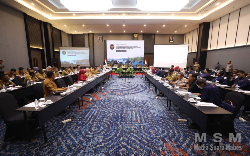 Rapat ini dipimpin oleh Marsma TNI Agus Pandu Purnama, Asisten Deputi Koordinasi Telekomunikasi dan Informatika Kemenko Polkam, dengan dukungan penuh Gubernur Papua Barat Daya Elisa Kambu, serta dihadiri oleh Bupati/Wali Kota se-Papua Barat Daya, perwakilan PLN, operator seluler nasional, asosiasi penyedia infrastruktur digital, dan lebih dari 85 peserta lintas pemangku kepentingan.