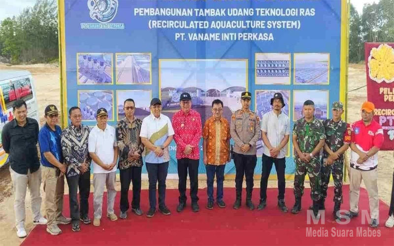 MediaSuaraMabes, Babel – Bupati Belitung Timur, Kamarudin Muten meletakan batu pertama pembangunan tambak udang Vaname. PT. Vaname Inti Perkasa, dikesempatan yang sama ini menyerahkan bantuan kepada masyarakat 1(satu) unit mobil Ambulance dan sembako, di Desa Mengkubang Kecamatan Damar Kabupaten Belitung Timur, Jum’at , (22/08/2025).