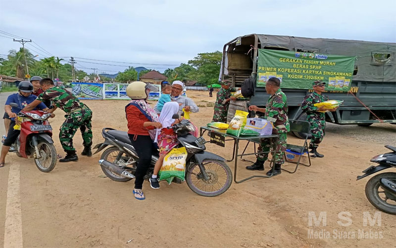 MediaSuaraMabes, Singkawang – Kodim 1202/Singkawang melalui Koramil 1202-03/Singkawang Tengah kembali menggelar penjualan beras program Stabilisasi Pasokan dan Harga Pangan (SPHP) untuk masyarakat di Jalan Perwira, Kelurahan Sekip Lama, Kecamatan Singkawang Tengah, Kota Singkawang. Kegiatan ini berlangsung pada Sabtu, (13/9/2025)