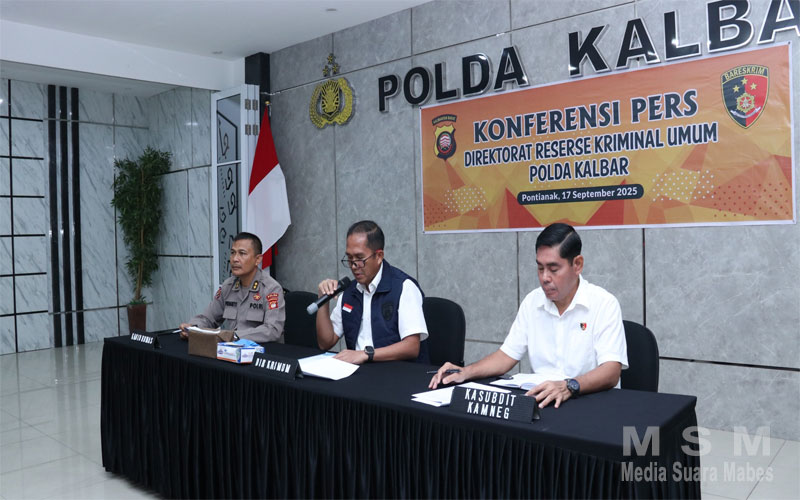 Konferensi Pers dipimpin oleh Ditreskrimum Polda Kalbar, Kombes Pol Raswin Bachtiar Sirait, S.H, S.I.K. M.Si didampingi oleh Kasubbid Penmas Bidhumas Polda Kalbar, AKBP Prinanto, dan Kasubdit Kamneg, Kompol Lely Suheri, S.H, M.M serta dihadiri oleh Para Awak Media baik Lokal maupun Media Nasional. (Rabu, 17/9/2025)