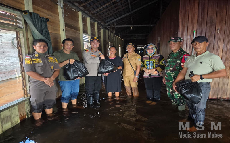 MediaSuaraMabes, Ketapang Kalbar – Polsek Manis Mata jajaran Polres Ketapang melaksanakan kegiatan monitoring perkembangan kondisi debit air Sungai Jelai di wilayah Kecamatan Manis Mata, Kabupaten Ketapang. Kegiatan ini sekaligus dirangkaikan dengan penyaluran bantuan sosial (bansos) dan pengecekan kesehatan kepada masyarakat terdampak di Desa Jambi dan Desa Sukaramai.