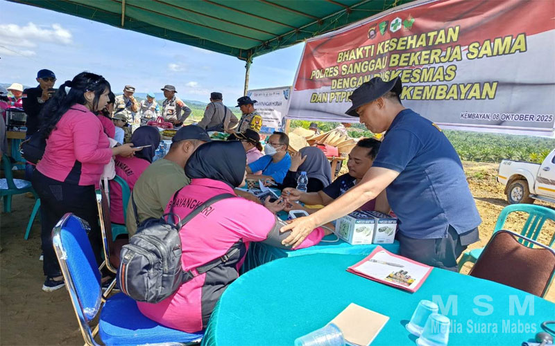 Kegiatan tersebut berlangsung di area tenda lokasi Gertam Jagung yang dipimpin oleh PS. Kasi Dokes Polres Sanggau, Aiptu Surip Sunaryo, bekerja sama dengan tenaga medis dari Puskesmas Kembayan serta pihak PTPN IV Regional V Kembayan.