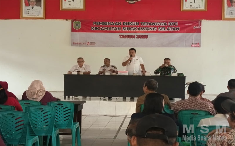 MediaSuaraMabes, Singkawang – Upaya memperkuat sinergi antara aparat kewilayahan dan masyarakat, Komando Rayon Militer (Koramil) 1202-02/Singkawang Selatan bersama Pemerintah Kecamatan Singkawang Selatan melaksanakan Kegiatan Pembinaan Rukun Tetangga (RT) Triwulan IV Tahun 2025 yang berlangsung di Aula Kantor Kecamatan Singkawang Selatan, Jalan Raya Sedau No. 238. Kamis,(09/10/2025).