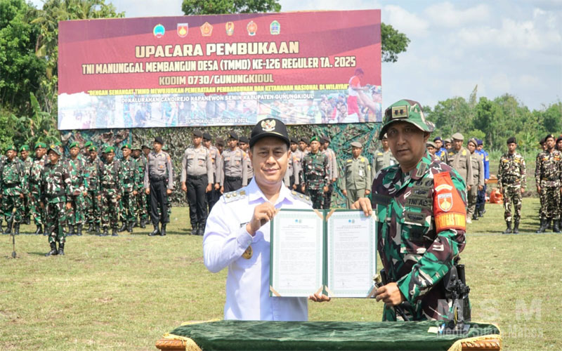 MediaSuaraMabes, Gunungkidul – Kegiatan TNI Manunggal Membangun Desa (TMMD) Reguler ke-126 Tahun Anggaran 2025 resmi di buka bertempat di lapangan Ketonggo, Kalurahan Sumberjo, Kapanewon Semin, Kabupaten Gunungkidul, dengan mengusung tema “Dengan Semangat TMMD Mewujudkan Pemerataan Pembangunan Dan Ketahanan Nasional Di Wilayah” pada Rabu (08/10/2025).