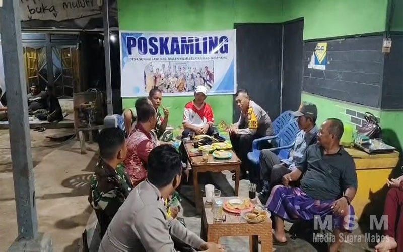 MediaSuaraMabes, Ketapang Kalbar — Dalam rangka meningkatkan sinergitas dan menjaga situasi keamanan dan ketertiban masyarakat (Kamtibmas), Kapolsek Matan Hilir Selatan, IPTU Jumadi Hutabarat, S.H., bersama Danramil Matan Hilir Selatan, Peltu Baharudin, dan Camat Matan Hilir Selatan, Abdulrani, S.Pd., melaksanakan kegiatan sambang ke Pos Keamanan Lingkungan (Pos Kamling) yang terletak di Desa Sungai Jawi, Kecamatan Matan Hilir Selatan, Kabupaten Ketapang, Sabtu 18 Oktober 2025.