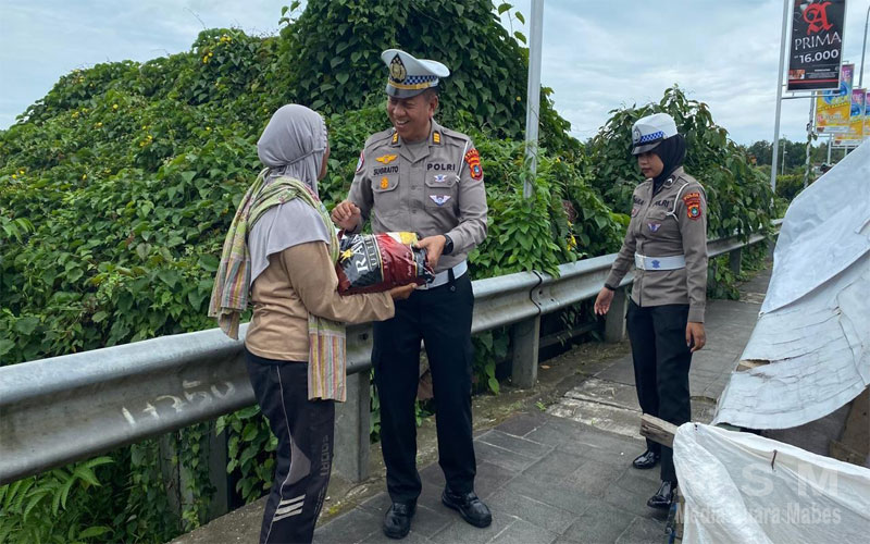“Termasuk ada juga kita bagikan sejumlah paket sembako yang merupakan hasil dari sedekah personel kita di Ditlantas,”sambungnya.