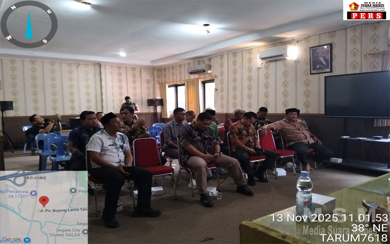 MediaSuaraMabes, Tarumajaya – Dalam rangka persiapan pembangunan Gudang dan Kantor KDMP (Koordinator Desa Mitra Pembangunan), Pemerintah Kecamatan Tarumajaya menggelar rapat minggon bersama para kepala desa se-Kecamatan Tarumajaya, Kamis (13/11/2025).