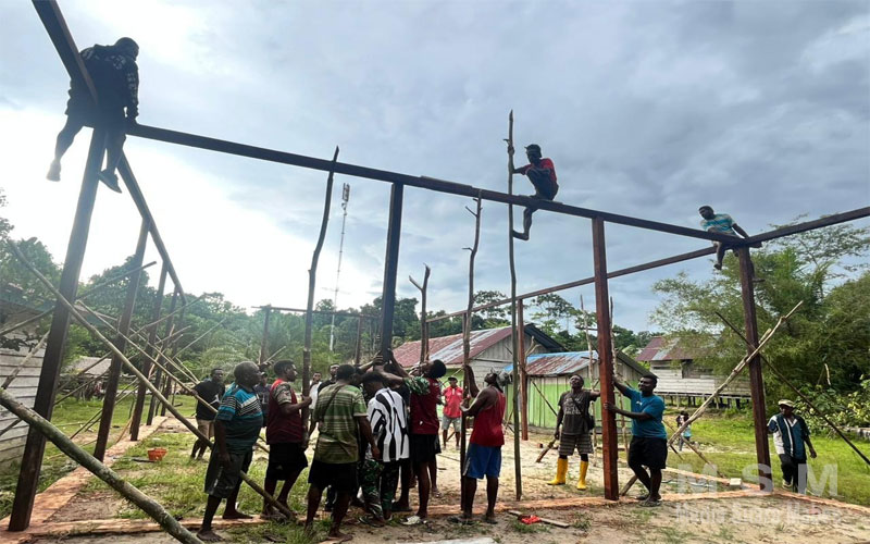 MediaSuaraMabes, Sorong Selatan – Papua Barat Daya – Dalam rangka mempererat hubungan dengan masyarakat, personel Satgas Pamtas RI-PNG Kewilayahan Yonif 763/SBA Pos Joshiro melaksanakan kegiatan memberikan bantuan berupa bahan bangunan untuk mendukung pengerjaan bangunan gereja baru di kampung Arsmin (19/11/2025).