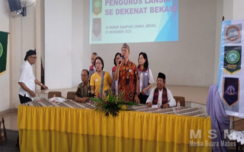 MediaSuaraMabes, Jakarta – Pertemuan tiga bulanan Pengurus Komunitas Lansia se-Dekenat Bekasi kembali digelar pada Sabtu, 15 November 2025, bertempat di Aula Paroki Santo Servatius, Kampung Sawah, Bekasi, yang sekaligus menjadi tuan rumah kegiatan.