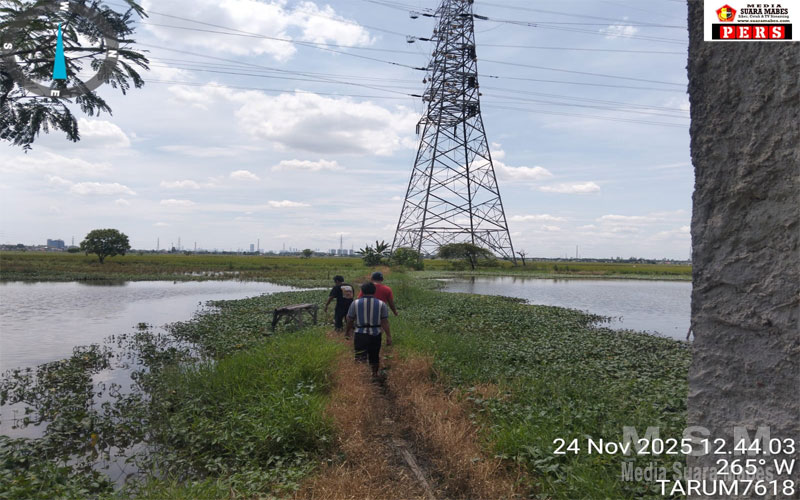 MediaSuaraMabes, Tarumajaya — Seorang warga yang sedang mencari keong di sekitar area Kavling Gapura, Desa Setiamulya, Kecamatan Tarumajaya, dikejutkan oleh peristiwa jatuhnya loler Saluran Udara Tegangan Tinggi (SUTT), pada Senin siang (24-11-2025).