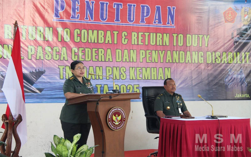 MediaSuaraMabes, Jakarta – Kepala Pusat Rehabilitasi Kesehatan Pertahanan (Kapusrehabkeshan) Kemhan Brigjen TNI dr. Daniel Lumadyo Wartoadi, Sp.Rad (K) menutup Program Rehabilitasi Terpadu Return To Duty (RTD) Angkatan L Gelombang II dan Return To Combat (RTC) VI TA. 2025. Acara tersebut dilaksanakan di Lapangan Shelter Mako Pusrehabkeshan jl. RC. Veteran no. 178 Bintaro Jakarta Selatan pada hari Kamis tanggal 27 November 2025.