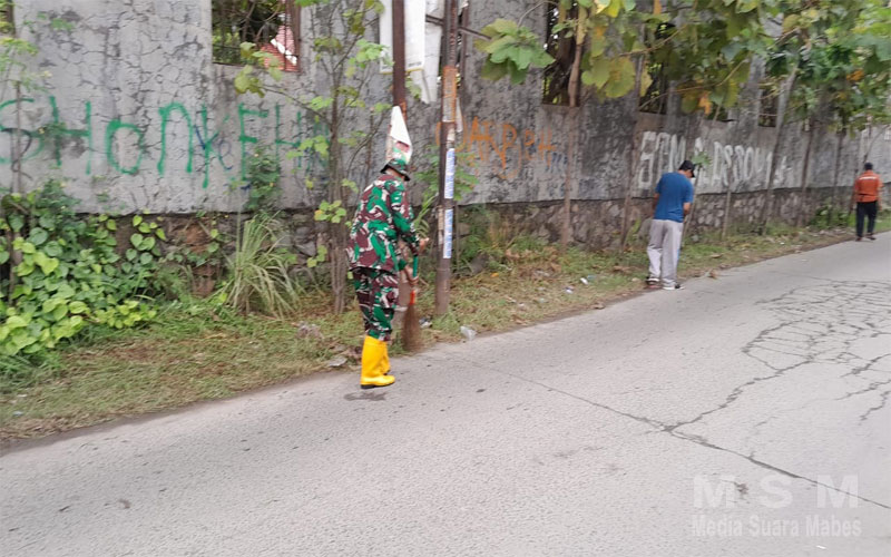 MediaSuaraMabes, Bekasi — Dalam rangka mengantisipasi puncak musim hujan, jajaran Babinsa Desa Setia Mulya Sertu Parmadi dan Serda Kurniawan bersama Bhabinkamtibmas Aipda Arif Pramono menggelar kegiatan kerja bakti di Jalan Raya Kampung Bogor Rawa Indah, RT 01 RW 03, Desa Setia Mulya, Kecamatan Tarumajaya, Kabupaten Bekasi, Minggu (7/12/2025).