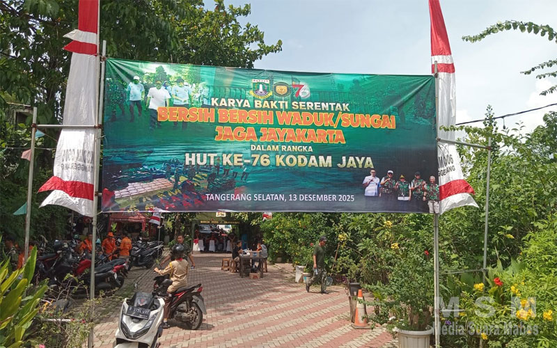 MediaSuaraMabes, Tangerang Selatan – Dalam rangka mendukung program pembinaan teritorial serta meningkatkan kepedulian terhadap kebersihan lingkungan, Danramil Pondok Aren Mayor Dwi Saputro memimpin kegiatan Karya Bakti pembersihan sungai, setu, dan tandon air di wilayah Kecamatan Pondok Aren, Kota Tangerang Selatan, Sabtu (13/12/2025).