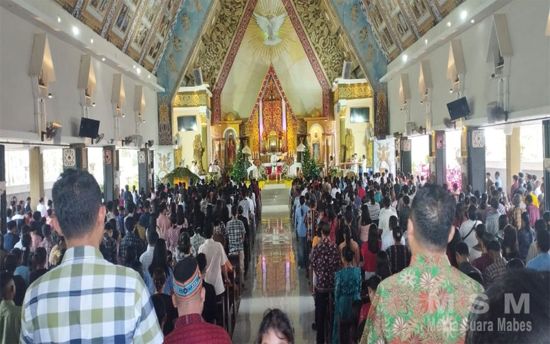 Ibadah Misa Natal tersebut dipimpin oleh Romo Ignatius Made Maju Jaya dengan tema ibadah “Allah Hadir untuk Menyelamatkan Keluarga”. Kegiatan ibadah diikuti oleh sekitar 800 jemaat umat Kristiani yang hadir dengan penuh khidmat dan tertib.