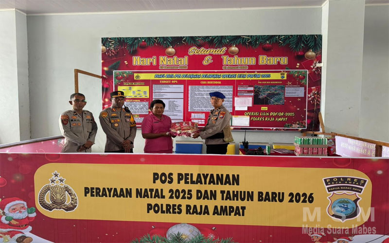 MediaSuarabes, Raja Ampat – Kapolres Raja Ampat AKBP Jems Oktovianus Tegai, S.I.K., selaku Ka Ops Res, melakukan pengecekan langsung ke sejumlah pos pengamanan Natal 2025 dan Tahun Baru 2026, pada Sabtu (27/12/2025). Didampingi Ketua Bhayangkari Cabang Raja Ampat Ny. Elsye Tegai, kegiatan ini merupakan bagian dari rangkaian pelaksanaan Operasi Lilin Dofior 2025.