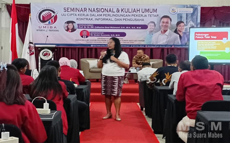 MediaSuaraMabes, Jakarta – Universitas Mitra Bangsa pejaten, ps.minggu. menggelar Kuliah Umum Dan Seminar Nasional bertajuk “menyoroti tujuan, proses legislasi, serta dampaknya terhadap perlindungan pekerja di Indonesia.” pada Sabtu, 14 Februari 2026.