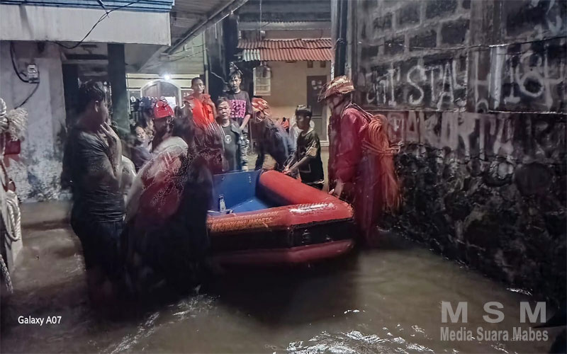 Merespons kondisi darurat tersebut, petugas dari Dinas Penanggulangan Kebakaran dan Penyelamatan (Damkar) segera diterjunkan ke lokasi. Dengan menggunakan perahu karet, petugas menyisir gang-gang sempit untuk mengevakuasi warga, terutama kelompok rentan seperti anak-anak dan lansia, ke tempat yang lebih aman. Hingga berita ini diturunkan, kondisi cuaca di lokasi masih terpantau hujan ringan setelah sebelumnya diguyur hujan lebat yang cukup lama.