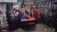 Dramatis! Damkar Evakuasi Anak-anak dan Lansia di Pasar Rebo Pakai Perahu Karet