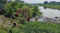 Babinsa dan Sejumlah Masyarakat Bersihkan Tumpukan Sampah di Depan Aliran Pintu Sungai di Desa Blimbingrejo