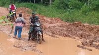 Danramil 1206-07 Empanang Peltu Abdias Hingaan Bersama Babinsa Melaksanakan Pengecekan Jalan, Terkait Keluhan Warga Desa Bajau Andai, Kec Empanang, Kab Kapuas Hulu, Kalimantan Barat