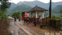 Babinsa Desa Papasan Bersama Warga Binaan Gotong Royong Bersihkan Material Tanah Longsor Yang Sempat Menutupi Akses Jalan